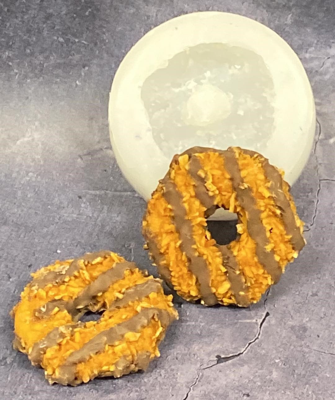 Using our Samoa cookie mold, you can create your own delicious looking caramel coconut treats.